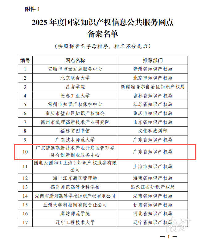笔者从清远高新区了解到,近日,国家知识产权局公布了2025年国家知识产权信息公共服务网络登记名单。清远高新区创新创业服务中心依托清远高新区知识产权协同运营(综合服务)中心的高效运行,成功入选清远首个国家知识产权信息公共服务中心。清远高新区知识产权协同运营(综合服务)中心于2022年7月启动,是立足高新区、服务全市的公共知识产权服务平台。为企业提供知识产权创造、运用、保护、管理“一站式”一体化服务,受到企业和上级主管部门的广泛认可。在2025年的业绩中广东省知识产权公共服务网点、广东省重点园区知识产权协同运营中心建设绩效评价,均获全省“优秀”评级。清远高新区知识产权合作(综合服务)中心。陈相如 摄 产权 产权贯穿于企业创新技术的全过程。运营中心成立以来,已引进15家专业知识产权服务机构和38名专业知识产权导师,累计培训知识产权专家53名、技术经纪人112名,建立了知识产权专业服务导师联盟和一支经验丰富的知识产权服务团队。 ● 目前运营中心已为区域内企业开发了知识产权数字化管理系统,为区域内企业提供知识产权数字化管理系统。数字化服务托管服务688家企业,推送创新主体追踪信息14000余条; ● 推动全区专利授权总数达到2509件,培育高价值专利522件,推动区域企业完成专利转让307件、专利转让265件。 ● 推动全区37家企业运用知识产权融资,融资注册额超过38亿元。 ● 成功指导14家企业被认定为各级智力优势/示范企业,1家企业被认定为高价值专利培育布局中心。清远高新区创新创业服务中心成功入选国家知识产权信息公共服务网,不仅充分验证了高新区知识产权工作,也对运营中心提出了新要求。接下来,清远高新区创新创业服务中心将以运营中心为依托,严格按照国家知识产权信息公共服务网点建设标准,进一步强化公共服务能力,整合各方创新资源,深化服务内涵,为企业提供“一站式、全链条”知识产权服务,全力推进知识产权强区建设,为清远高新区创新创业服务中心注入新动能。 区域经济高质量发展。南都+记者 陈丽凯 通讯员 何倩怡 王杰万